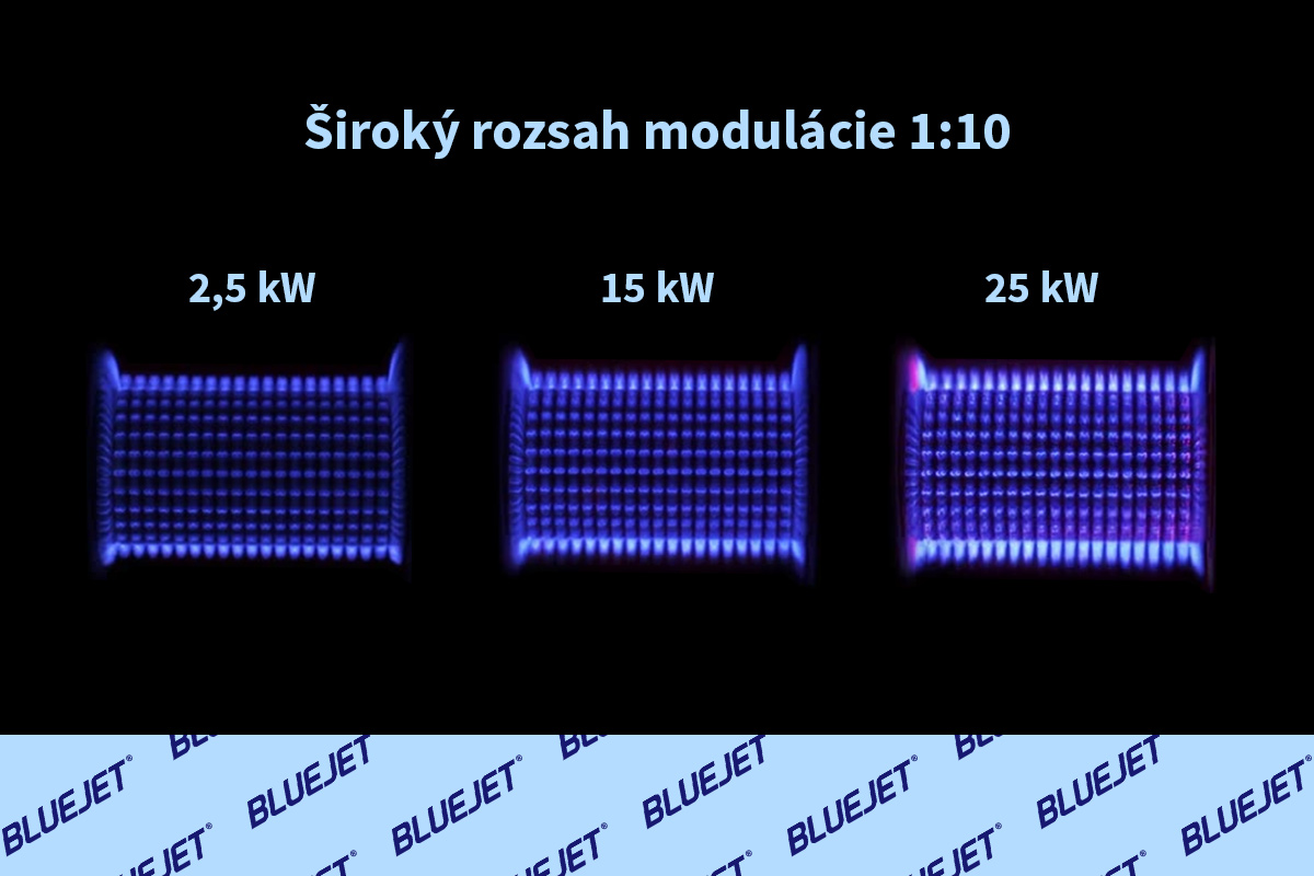 - Široký rozsah modulácie až 1:10 – od 2,5 kW do 25,0 kW